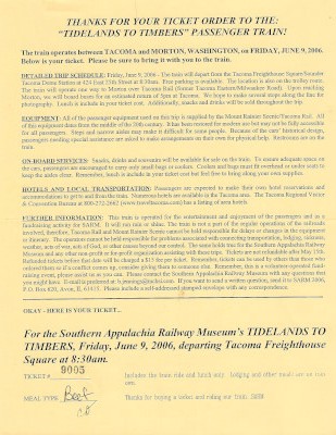 The ticket and information for today's trip. Upon arrival, we set up a photo line for the first runby of the day.