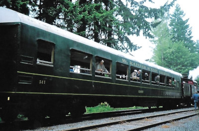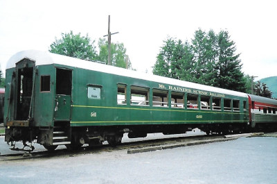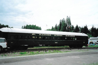 Unidentified cars of the Mount Rainier Railroad Dining Company, which is not affiliated with Mount Rainier Scenic Railroad.