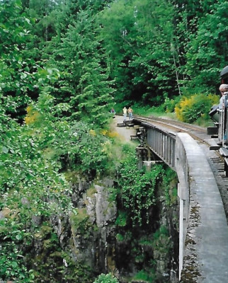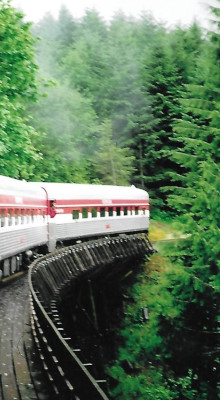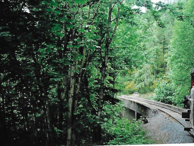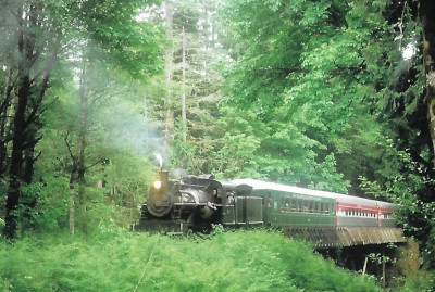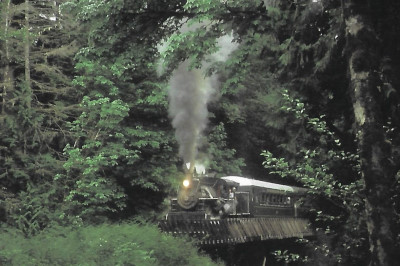 Looking toward the rear of the train as it crosses the concrete bridge at MP 36. We then stopped at Eatonville for steam engine servicing.