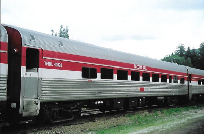 TMBL 88-seat coach 40010 (ex. TMBL 4001, exx. AMTK 7603, exxx. AMTK 7411, exxxx. PC 1580, nee PRR 1580). Built 1952.