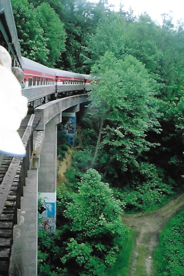 The rear of the train crossing the east fork of the Tilton River on a 9 degree curve.