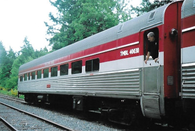 Tacoma Municipal Belt Line coach 40030 (ex. TMBL 4003, exx. AMTK 7000, exxxx. PC 1569, nee PRR 1569) at Eatonville.