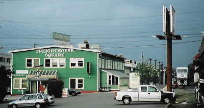 Freighthouse Square and Sounder train as seen from the Mount Rainier Scenic excursion train.