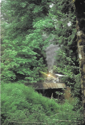 Silver Creek Logging Company steam engine advertising the Mount Rainier Scenic Railway. Silver Creek Logging was started by Tom Murray, founder of the Mount Rainier Scenic Railroad.