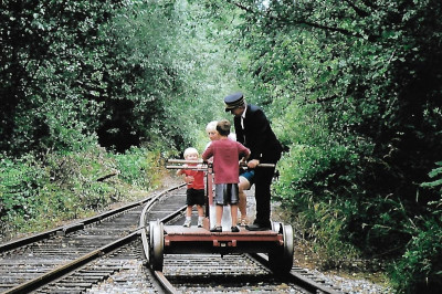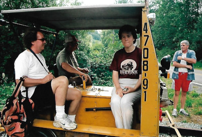 One of the volunteers gave passenger handcar rides during the layover; I was one of those.