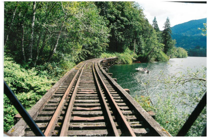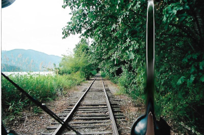 Our speeder ride started along the right-of-way with Lake Whatcom to the left.