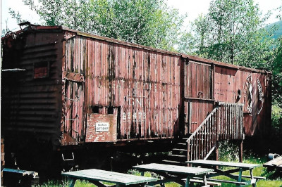 Great Northern wooden boxar 25478 houses the railway's gift shop.