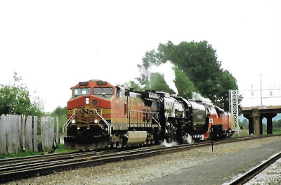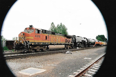 Union Pacific 844 and Southern Pacific 4449 lead the shipper's special at MP 18 of the BNSF Scenic Sub.