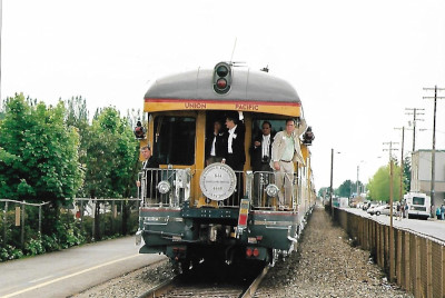 Union Pacific observation car "St. Louis" sporting a drumhead for the Barriger National Library fundraising excursion. Our chase ended here.