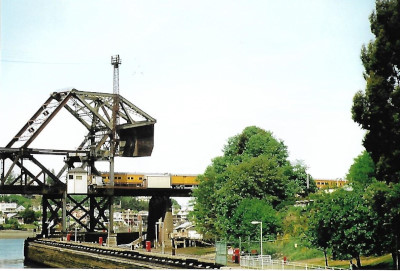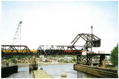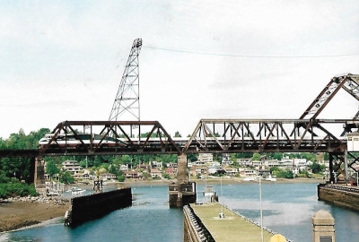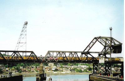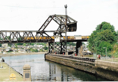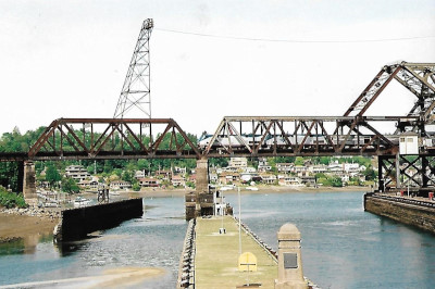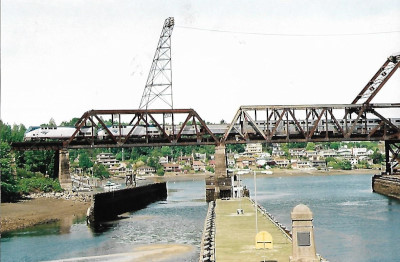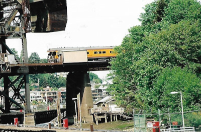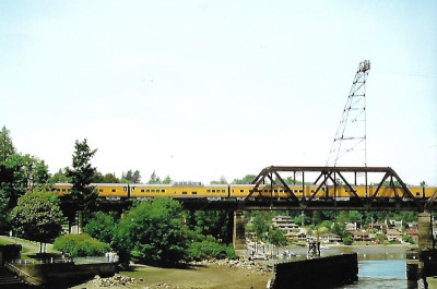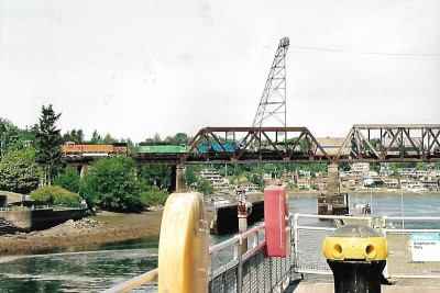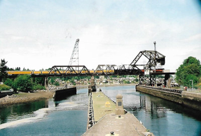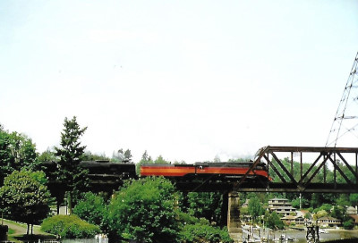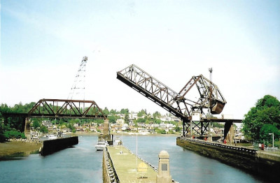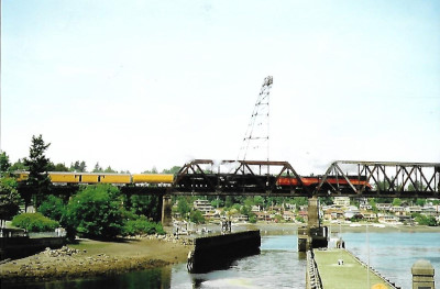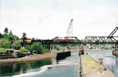 About 11:30, Southern Pacific 4449 and Union Pacific 844 led the shipper's special across the bascule bridge over Lake Washington. We then drove to Everett to catch it on its southbound trip.