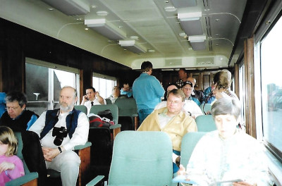 The interior of one of the dome cars - either "City of Portland" or "Missouri River Eagle".