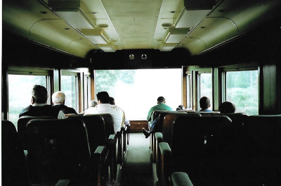 The view from Union Pacific "Idaho" (ex. UP 11-bedroom sleeper "Sun Lane" 1965, exx. 12-roomette/4 double bedroom "Western Mountain" 1950).
