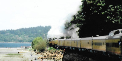 Bob was chasing the excursion and caught the train along Marine Drive in Everett.