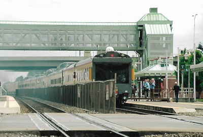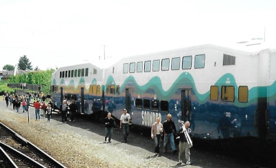 The train arrived at Everett where the Sounder commuter train was at rest. Many railfans and the general public were there to greet us. While the steam engines were serviced and switched, everyone stayed on board and was given a boxed lunch.