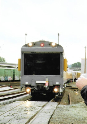 The train reversed into the station with the track inspection/theatre car "Idaho" leading.