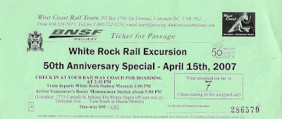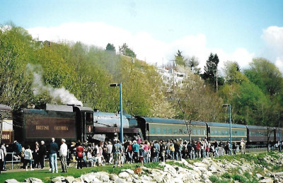 West Coast Rail Tours, a division of the West Coast Railway Association, advertised a White Rock Rail Excursion from Vancouver to White Rock, which was the signature event to celebrate the City of White Rock's 50th anniversary of incorporation. This steam excursion would be led by Canadian Pacific 4-6-4 2860, the Royal Hudson, and it would be my first time riding behind this historic engine.