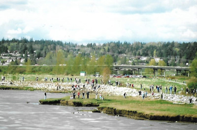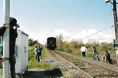 The photo line of railfans and the public at Mud Bay taking in the spectacle of the Royal Hudson excursion train.