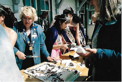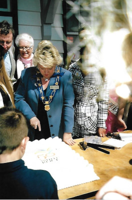 Mayor Judy Forster (term 2003 to 2008) cutting the cake.