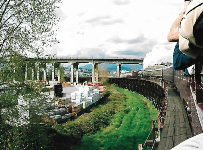 The rear of the steam excursion crossing the Fraser River. It then made its way to the Rocky Mountaineer station in Vancouver where everyone detrained. Bob returned to White Rock on the motor coach to retrieve his car and head home and I went with Hugh Fraser and his friend to the ferry terminal where we met up with another steam enthusiast, Peter Lofthouse, who had also been in The Henry Pickering open car. We all had dinner in the Pacific Buffet of the ferry, which was a very nice way to end this fantastic day. Upon arrival at Swartz Bay, I returned to my car and drove home.