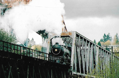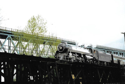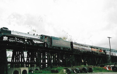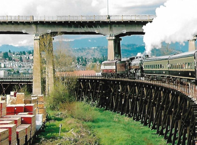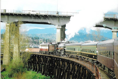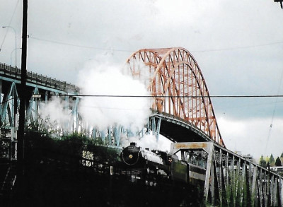 Canadian Pacific 4-6-4 2860 (Royal Hudson) leading the special train over the Fraser River Bridge en route to White Rock.