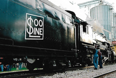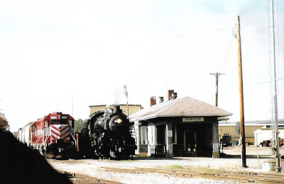SOO Line 1003 and WSOR 3801 by the old depot/office of the Wisconsin and Southern.
