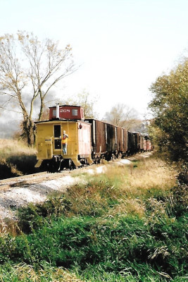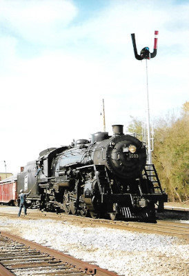 Kelly Lynch hooping up orders to the engineer of 1003 by the semaphore signal. The drive from Horicon to Rubicon was then made.