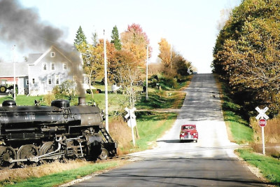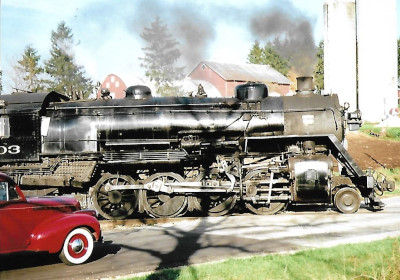 By chance, a 1940's era car drove down Grant Road and the organizer chatted with the driver. He was very amenable at posing his car on each side of the tracks for period pictures.
