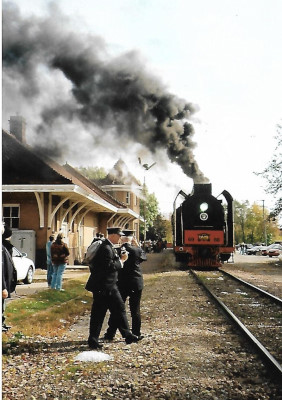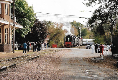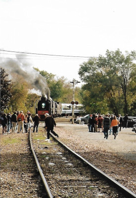 The excursion train arriving at Iowa City. Chris and I detrained, met up with Bob and walked down to the front of the train for a picture.