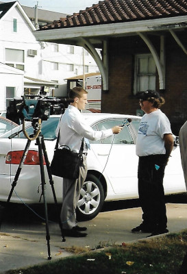The local television station was on hand to cover the event and interviewed a few of the riders, including Chris. The three of us returned to the car and drove to Atalissa, where we had seen a station from the train.