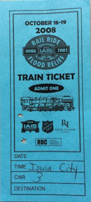 Since Iowa Interstate's QJs were based in Iowa City and had been in Rock Island for the Rail Ride for Flood Relief trips the day before (see previous travelogue), the railway decided to sell tickets for a one-way ferry move of the two steam engines and passenger cars. Chris and I would ride this with Bob chasing and then picking us up in Iowa City.