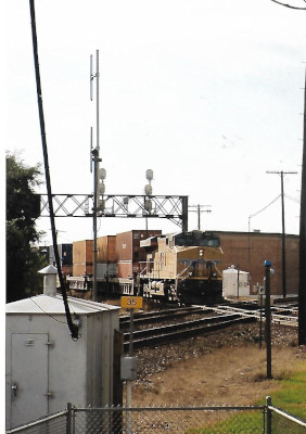 Although Bob missed the train going through West Liberty, he photographed the former Rock Island station here, at MP 221.3 of the Iowa Interstate Railroad. The platform is the former tracks that crossed the east-west line and was the route of the Twin Star Rocket.