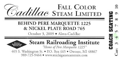 It was announced in July that as Pere Marquette 2-8-4 1225 had been sidelined with a flue problem during Train Festival 2009, it and Nickel Plate 2-8-4 765 would lead a double-headed steam excursion from Alma to Cadillac, Michigan in October. This was the first time since 1949 that the two engines had operated together. It was an easy decision to attend and Bob and I made plans to do this trip with Chris Guenzler. We would meet in Detroit on October 2nd, rent a car, drive to Alma for the excursion then visit the Henry Ford Museum and Greenfield Village in Dearborn the following day.