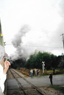 Looking at the tracks we had just travelled on. It started to rain so I returned to my seat and enjoyed the rest of the ride. Upon arrival at Alma, the three of us returned to the car and drove to Mount Pleasant where we had a good dinner at the Lone Star Steakhouse before going back to the hotel. Tomorrow, a visit to the Henry Ford Museum in Dearborn.