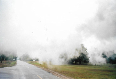 Rounding a curve with the chasers out in full force. We arrived in Cadillac and took some pictures before going to the Blue Heron Cafe for lunch.