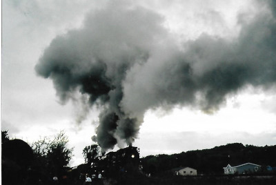 Nickel Plate 765 and Pere Marquette 1225 putting on a show of coal smoke and steam.