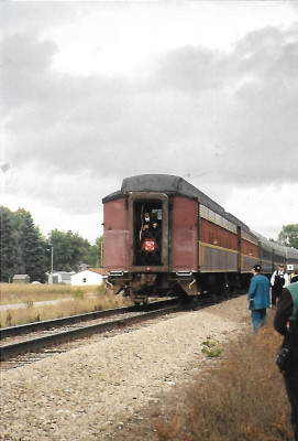 Grand Trunk Western buffet-club car 899 "Silver Lake" (ex. Global Communications 1983, exx. Canadian National diner-bar-lounge, exxx. Grand Trunk Western buffet-club car, nee Grand Trunk Western buffet-parlour 899 "Silver Lake"). Purchased by Bluewater Chapter NRHS in 1985. The car had been used on the Maple Leaf and Mohawk Trains when in Grand Trunk Western service. The train departed on time and there was an announcement that we would be doing a couple of runbys on the return trip.