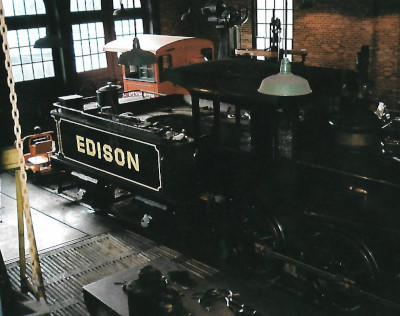 "Edison", based on an 0-4-0 switcher locomotive built about 1870 by Manchester Locomotive Company. Henry Ford purchased the switcher from Edison Portland Cement Company in 1932 and had it rebuilt into a 4-4-0 wheel arrangement by staff at Ford Motor Company's Rouge locomotive shop.