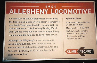 The main area I was interested in seeing was the railway section; in particular the huge Allegheny. Here is Chesapeake and Ohio 2-6-6-2 1601.