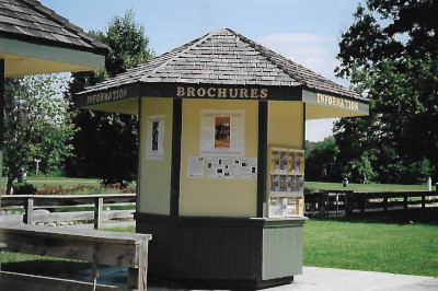 The information and brochure 'gazebo' at the entrance to Crossroads Village.