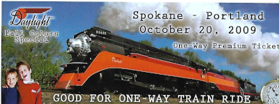 My ticket for this special train ride. The train departed Spokane on time and we were on our way.