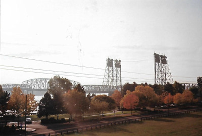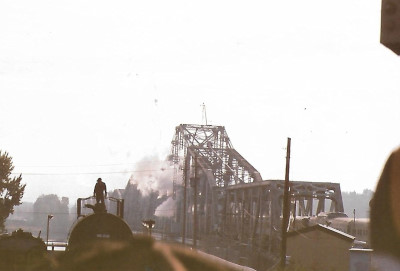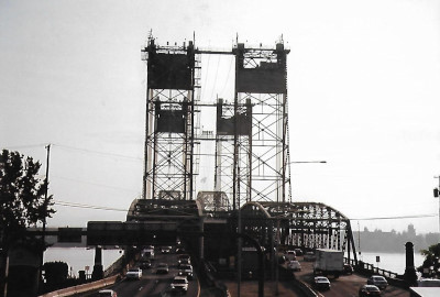 Crossing the Willamette River bridge.
