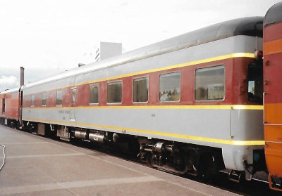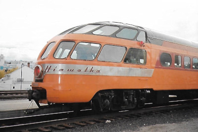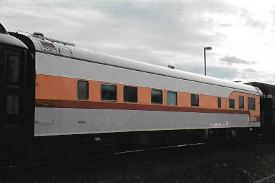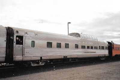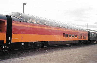 Milwaukee Road 53 "Super Dome". PPCX 800862. (ex. North Carolina Department of Transportation 400301 "Mount Mitchell", exx. Union Pacific 421 "Powder River", exxx. Chicago and North Western 421 "Powder River", exxxx. Rail Travel Associates 53, exxxxx. VIA 2701, exxxxxx. Canadian National 2701, exxxxxxx. Canadian National 2401 "Athabasca", nee Milwaukee Road 53). Built 1952.