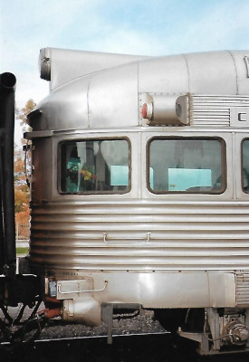 The unique and unmistakeable end of Milwaukee Road Skytop observation car 186 "Cedar Rapids". PPCX 800040.