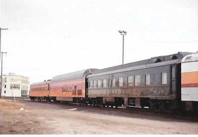 The rear three cars on the westbound Southern Pacific 4449 trip from Owosso to Portland -- Cedar Rapids, Super Dome and MKT 403.