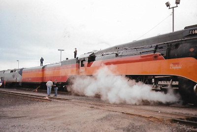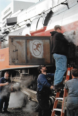 The Milwaukee Road 261 crew had had some fun with Southern Pacific 4449 during its visit to Owosso, Michigan for Train Festival.