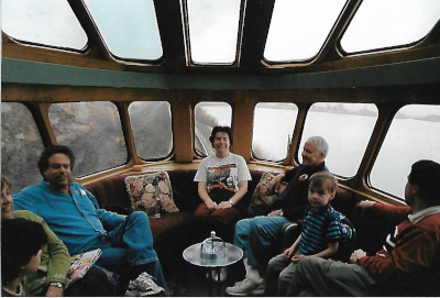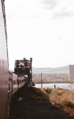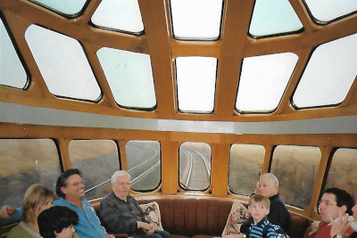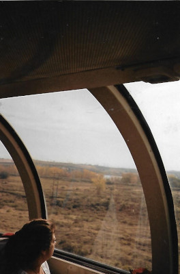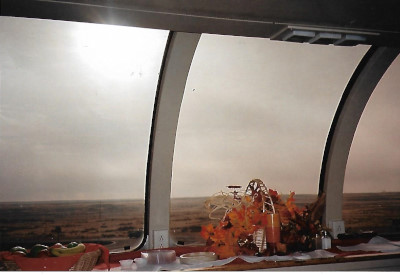 The skies have cleared and it is a perfect autumn day as passengers enjoy the view from the observation section of "Cedar Rapids".