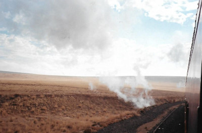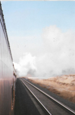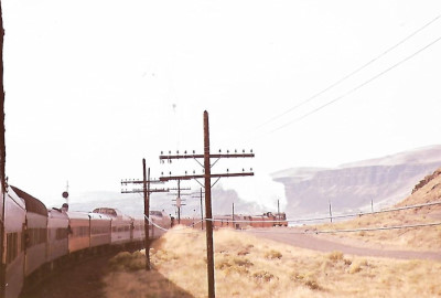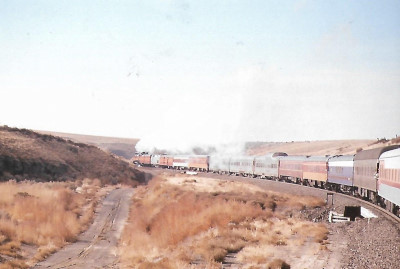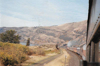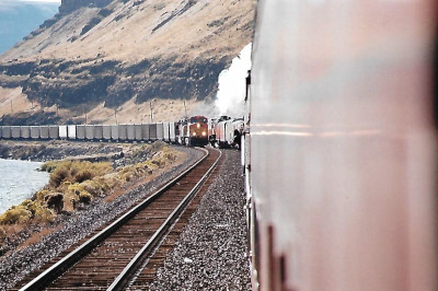 Smoke from Southern Pacific 4449 and a view of the BNSF right-of-way en route to Pasco.