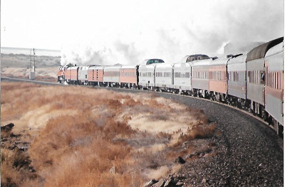 Southern Pacific 4-8-4 4449 leading the excursion train through rural Washington countryside.