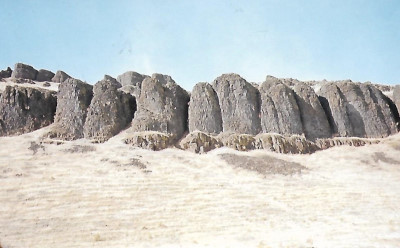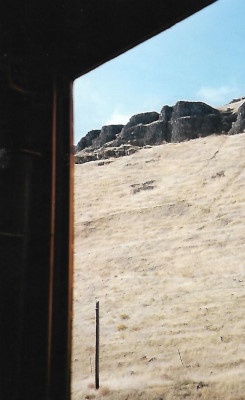 Rock outcroppings as seen from the train in the Wallula Gap.