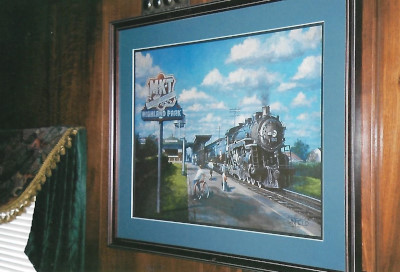 A Missouri-Kansas-Texas painting by John Winfield in the lounge area of MKT 403.
